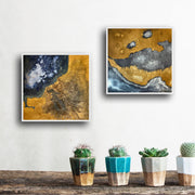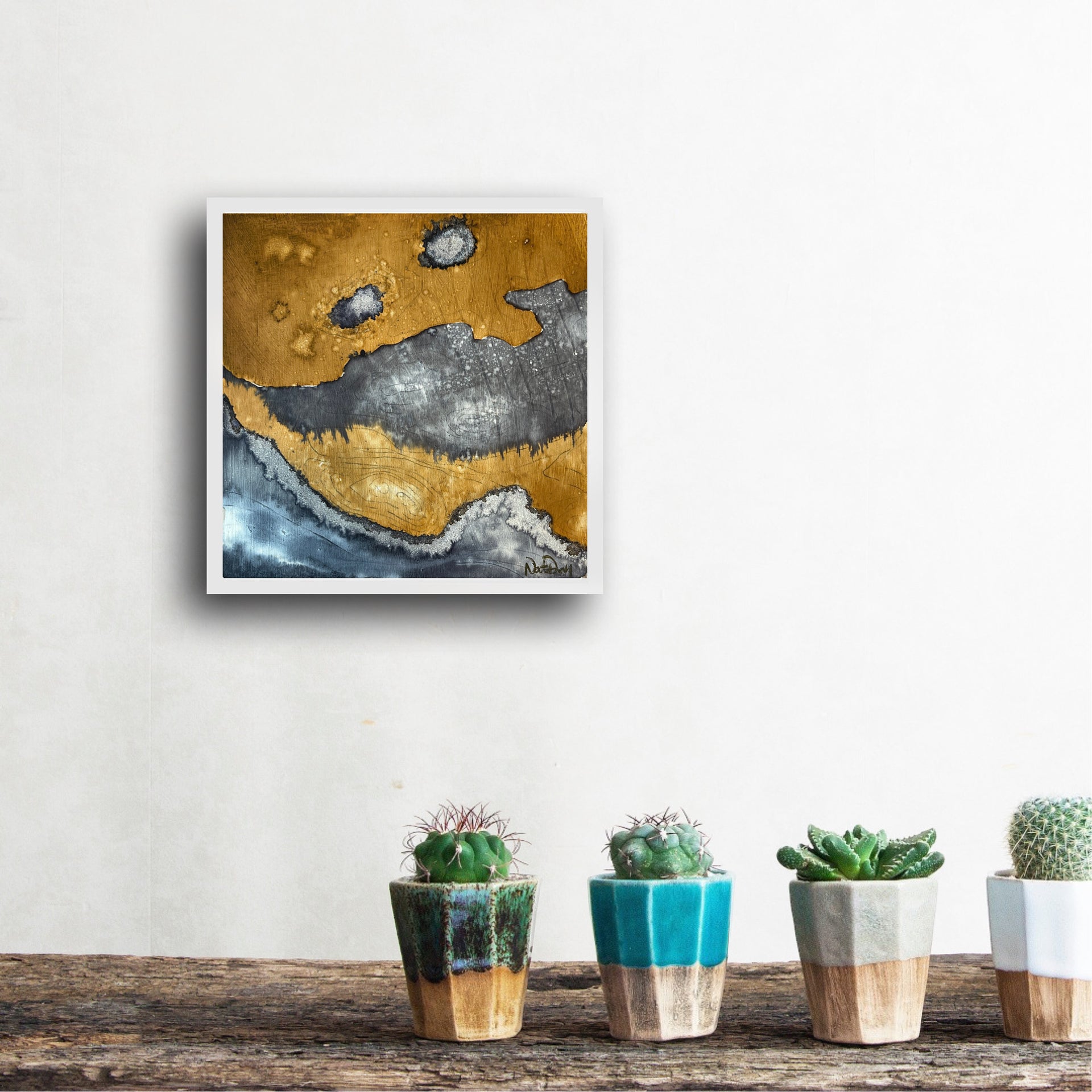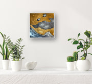 The painting is 20cm by 20cm and is supplied in an off-white float frame with fixings for wall hanging.