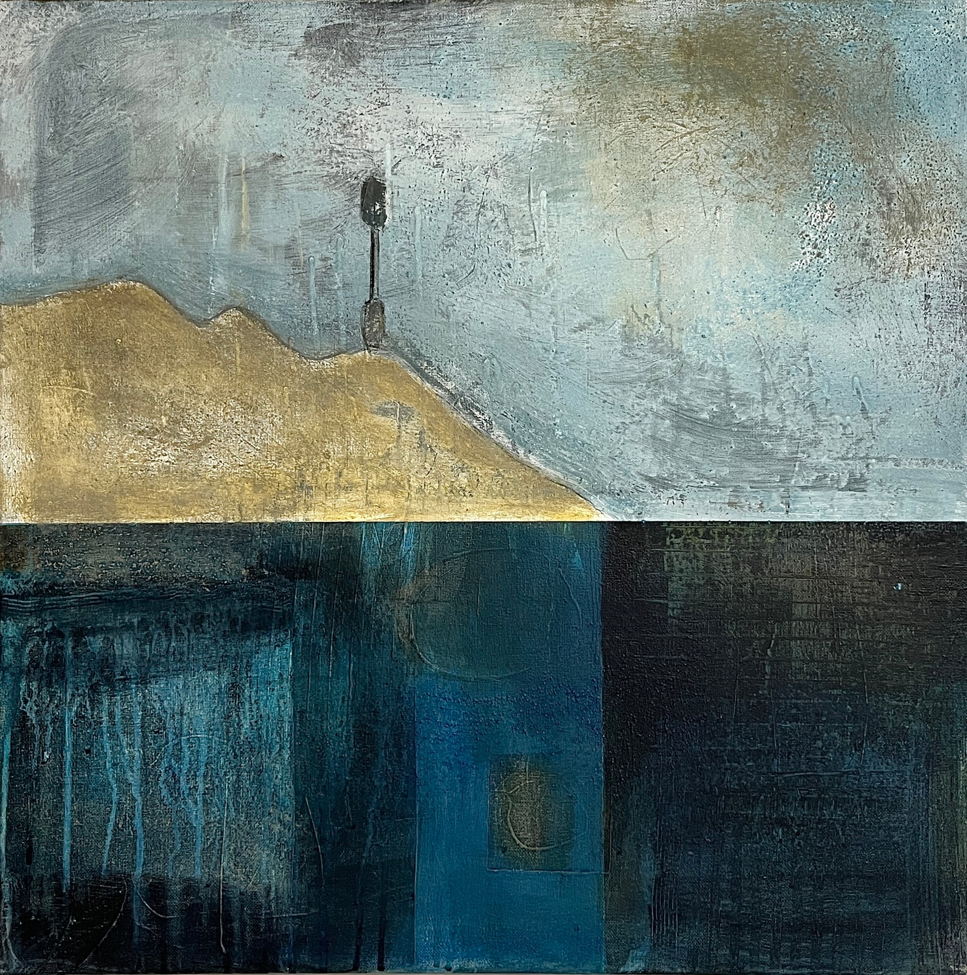'Harbour Guardian' captures the steadfast presence the iconic Barrel Rock, perched at the edge of the breakwater. The addition of earth pigments gathered from the local cliffs brings the essence of this place directly into the artwork.