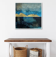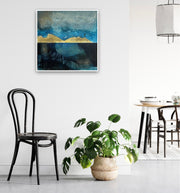 The painting is 60cm by 60cm and is supplied in an off-white float frame with fixings for wall hanging.