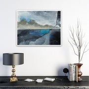 The painting is 50cm by 40cm and is supplied in an off-white float frame with fixings for wall hanging.