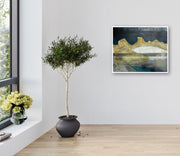 The painting is 61cm by 51cm and is supplied in an off-white float frame with fixings for wall hanging.