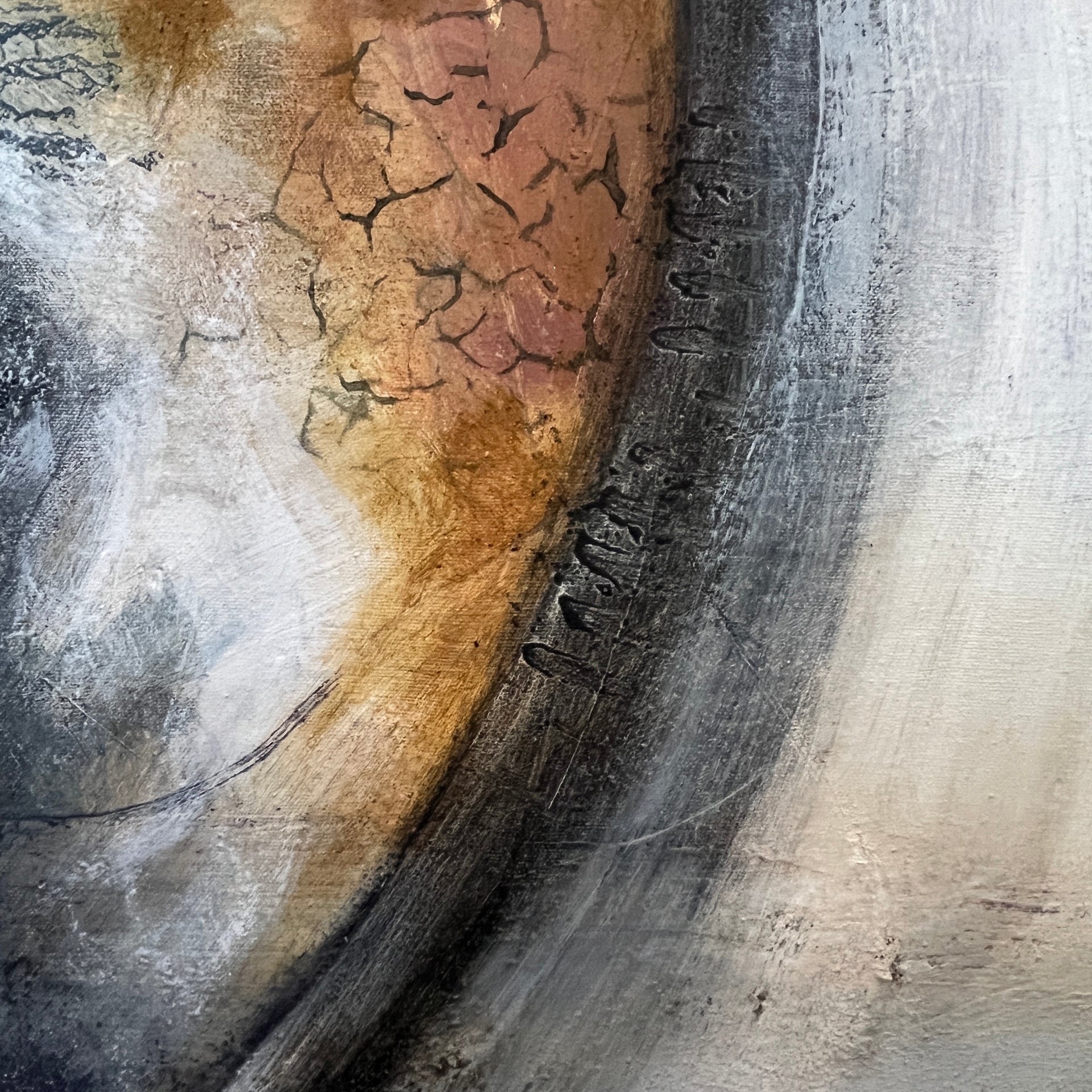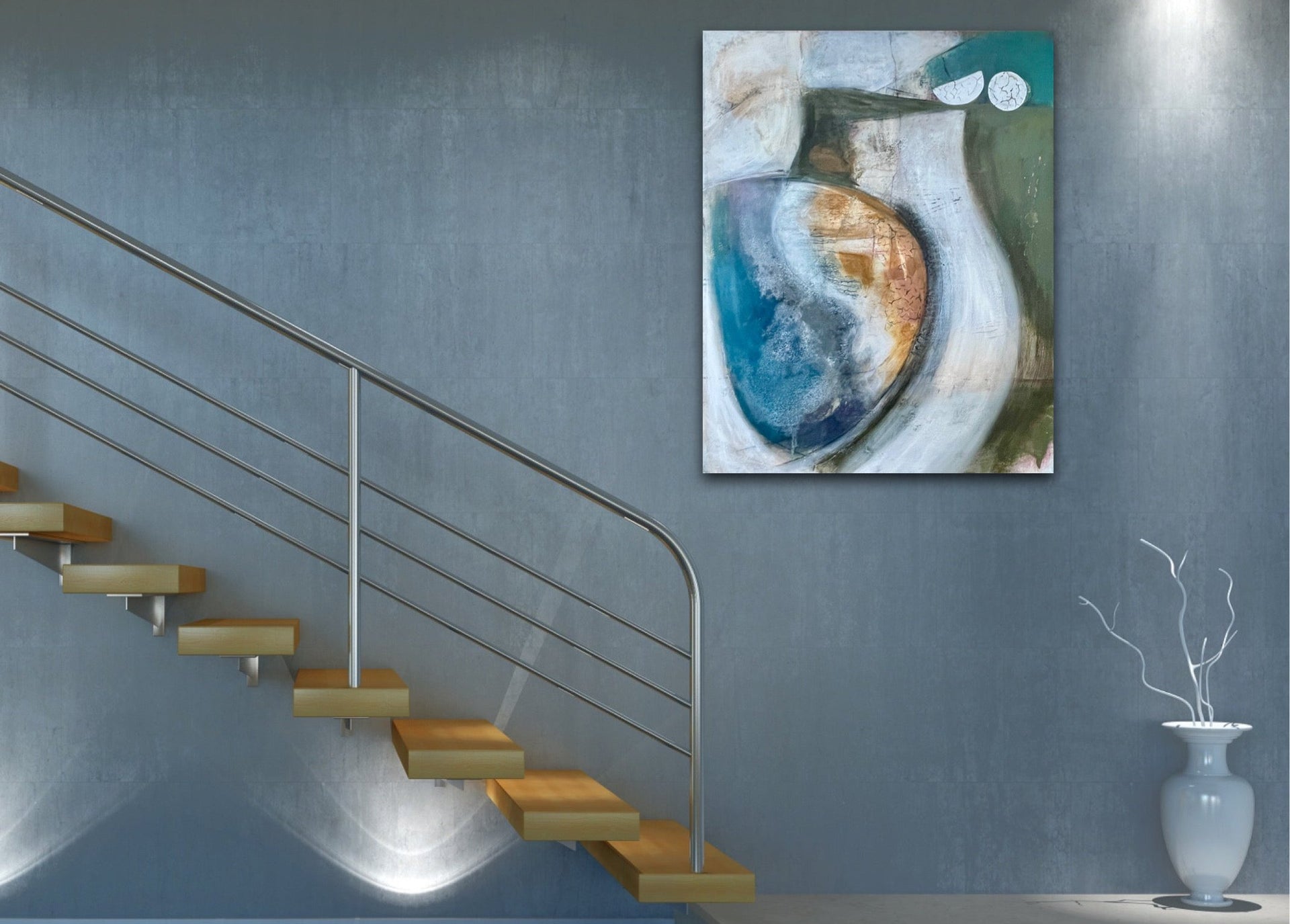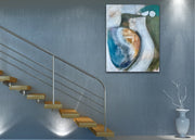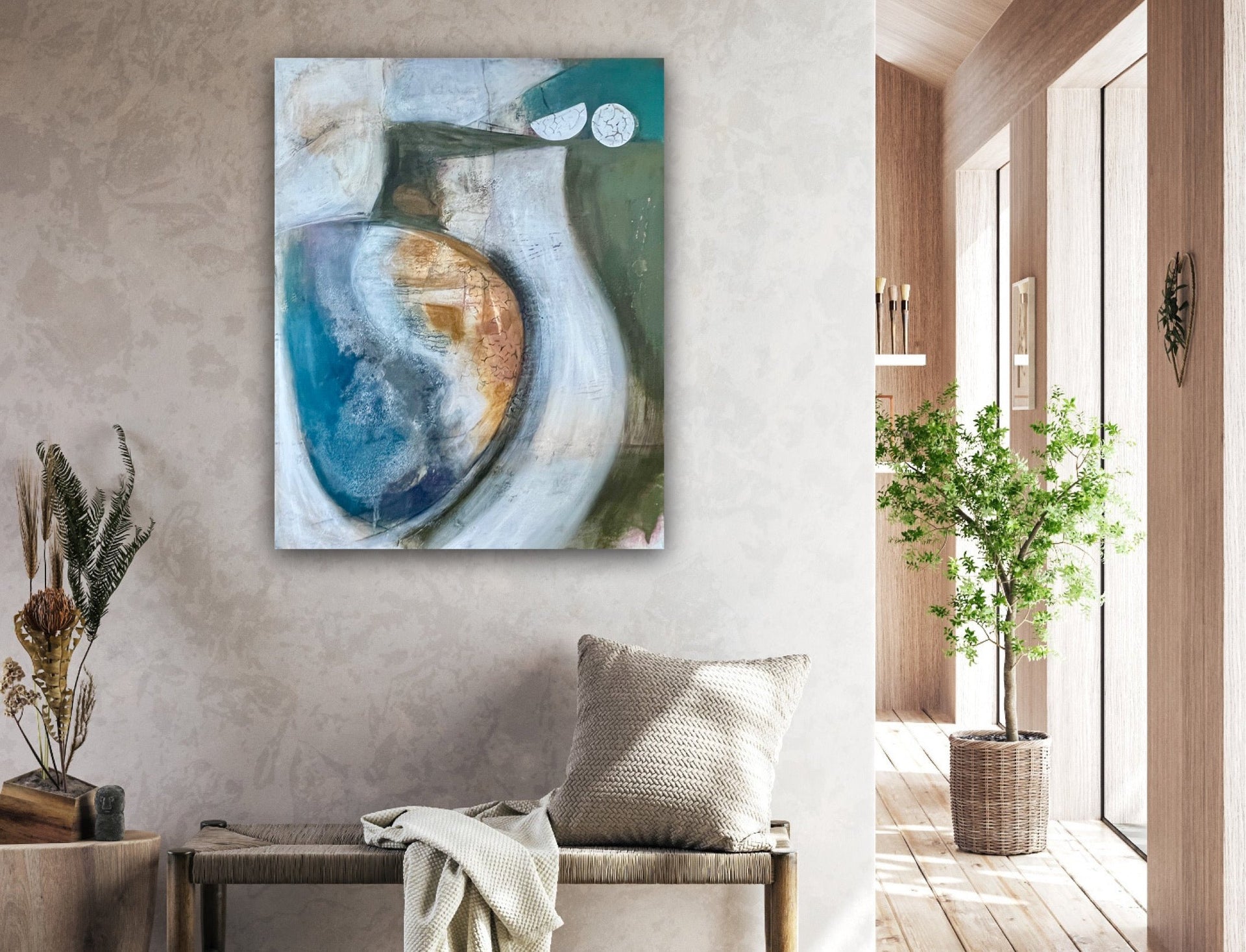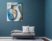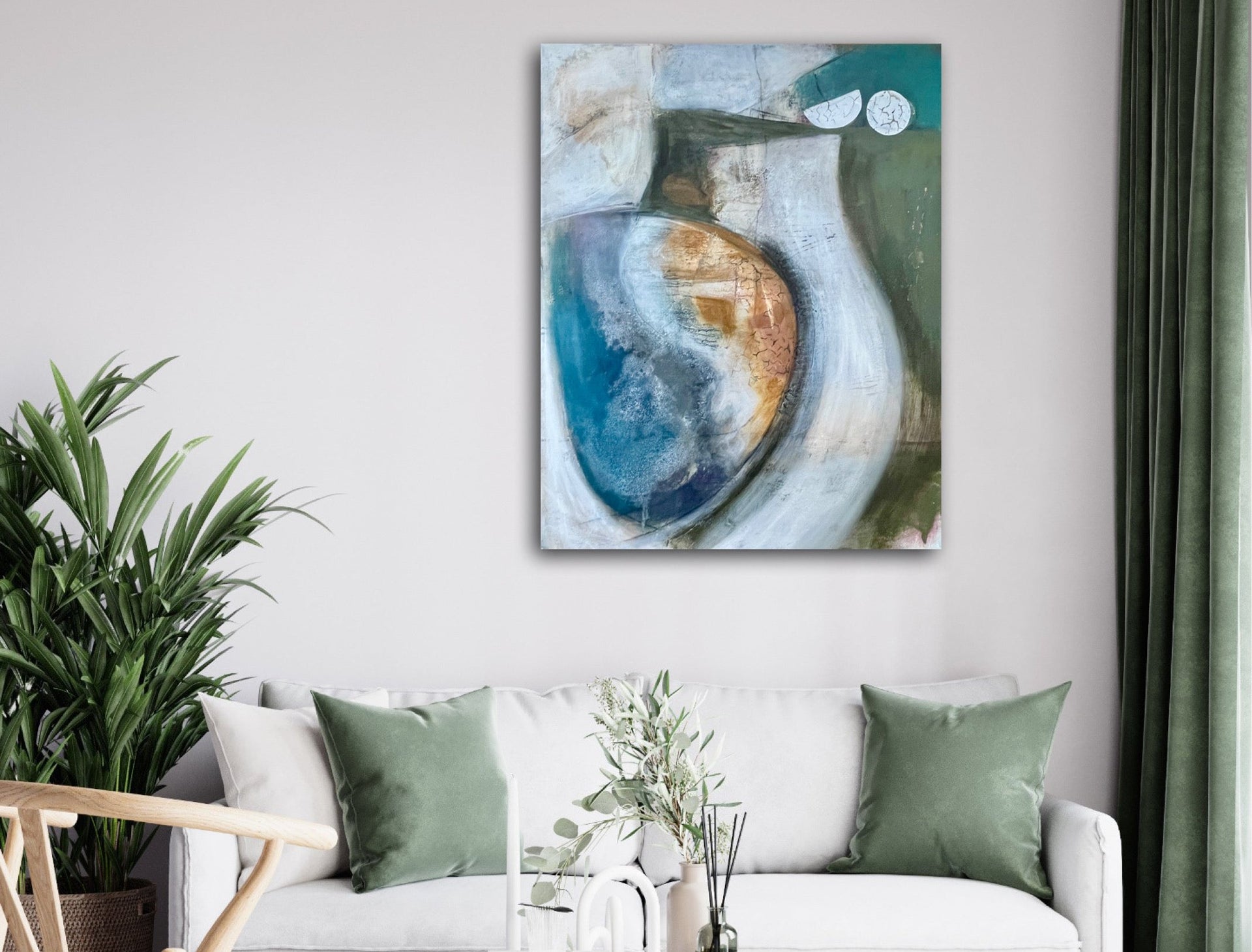 The painting is 80cm wide and 100cm tall and is supplied with fixings for wall hanging and off-white painted edges.