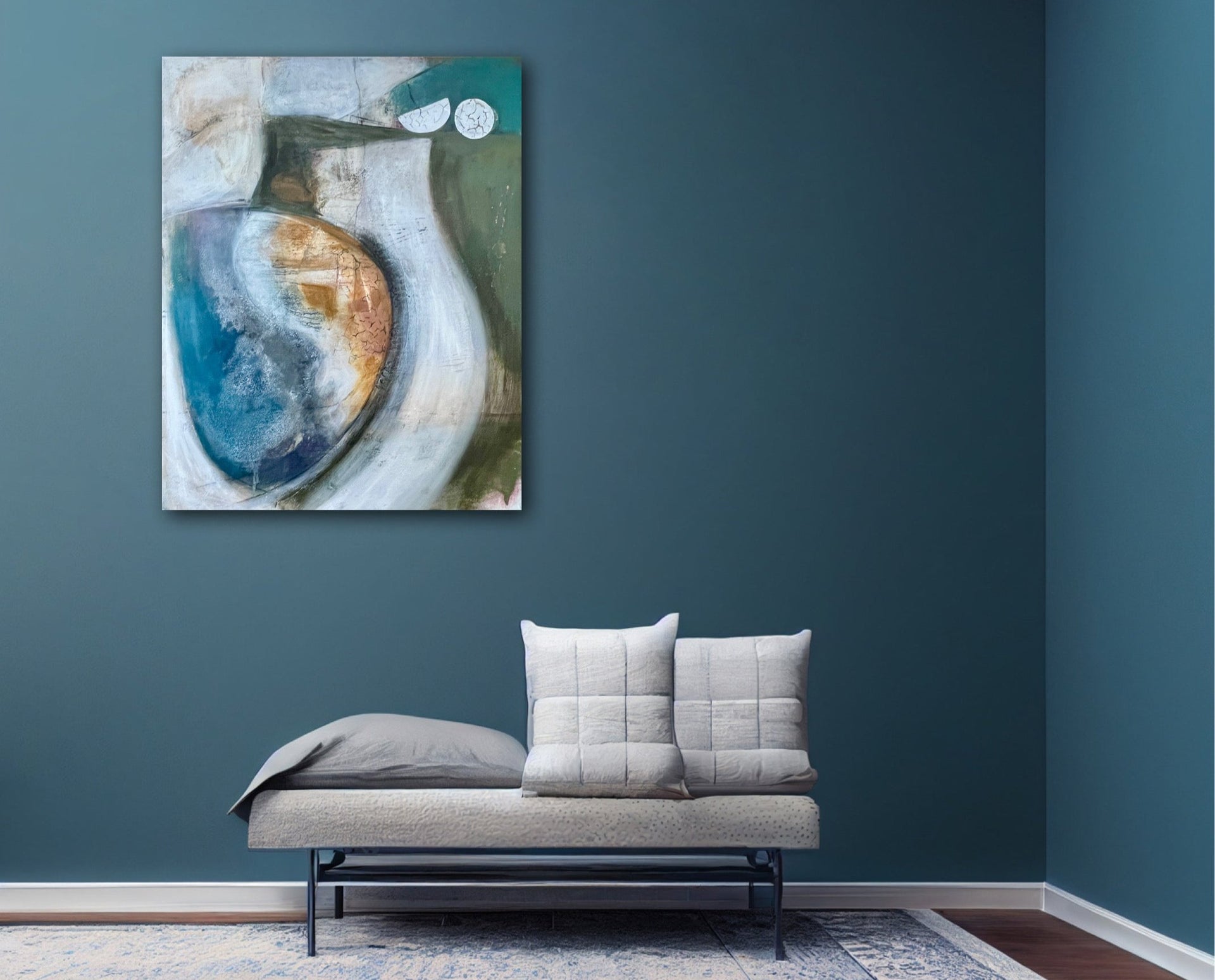 This is an original mixed media painting - charcoal, hand made local earth pigment paint, cyanotype and acrylic on canvas.