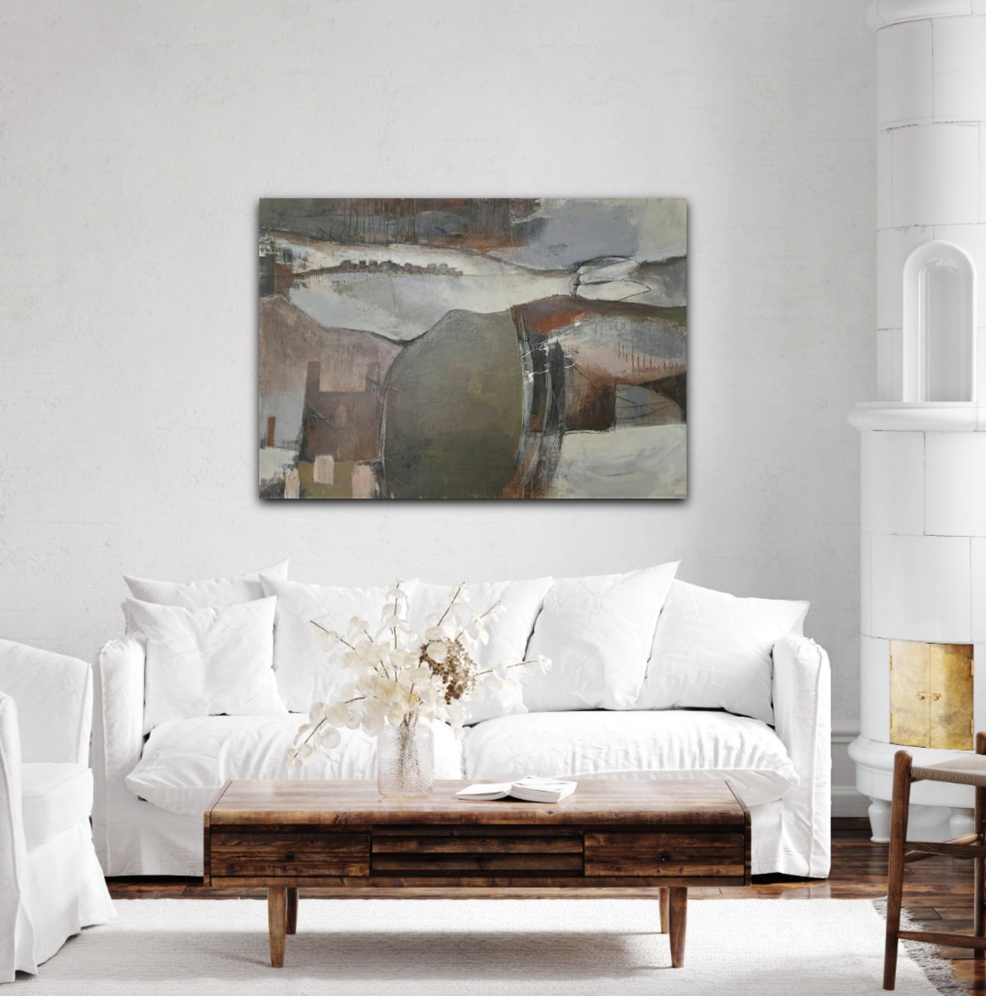 The painting is 120cm x 85cm x 3.5m with dark painted edges, unframed and supplied ready to hang.