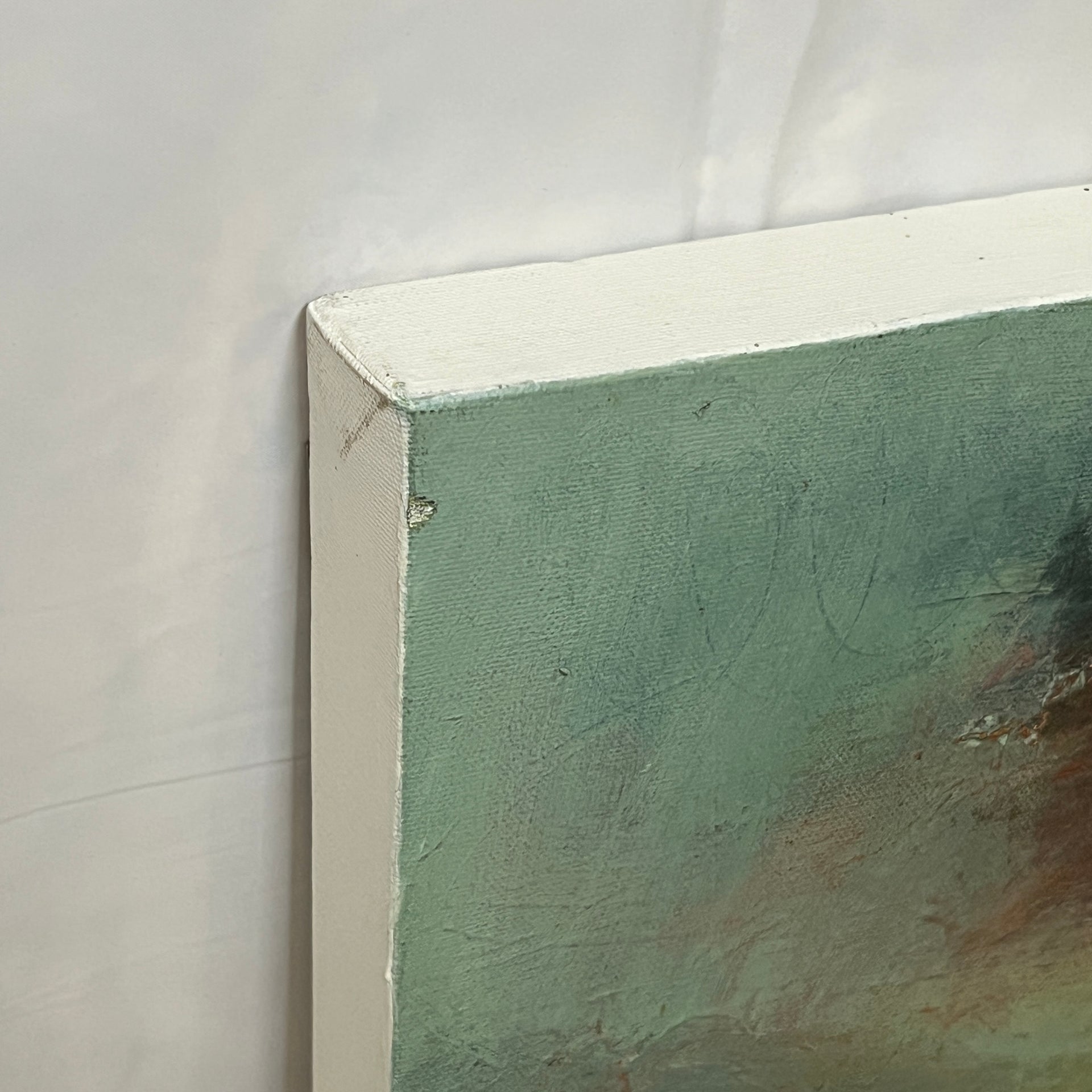 Unframed with off-white painted edges.