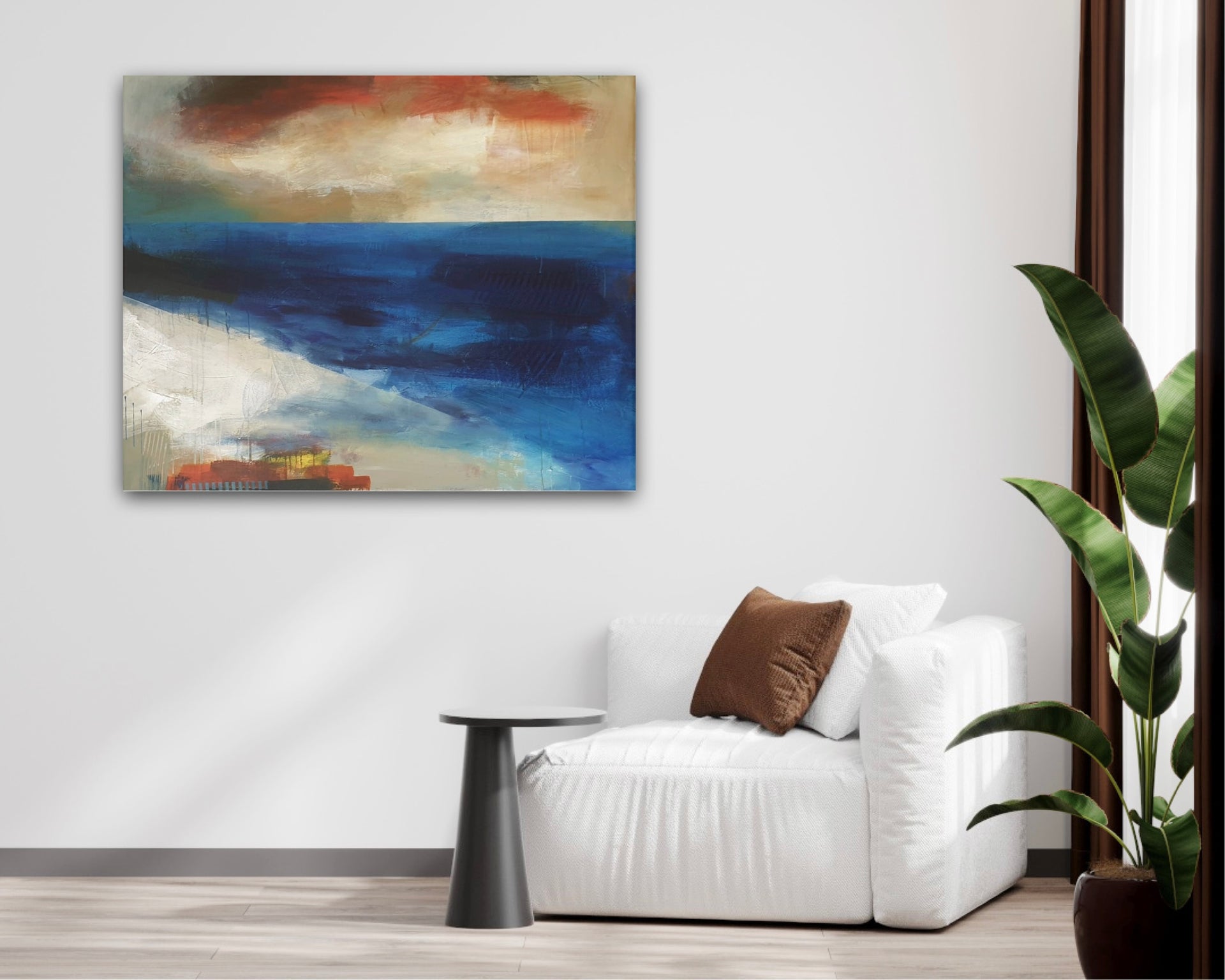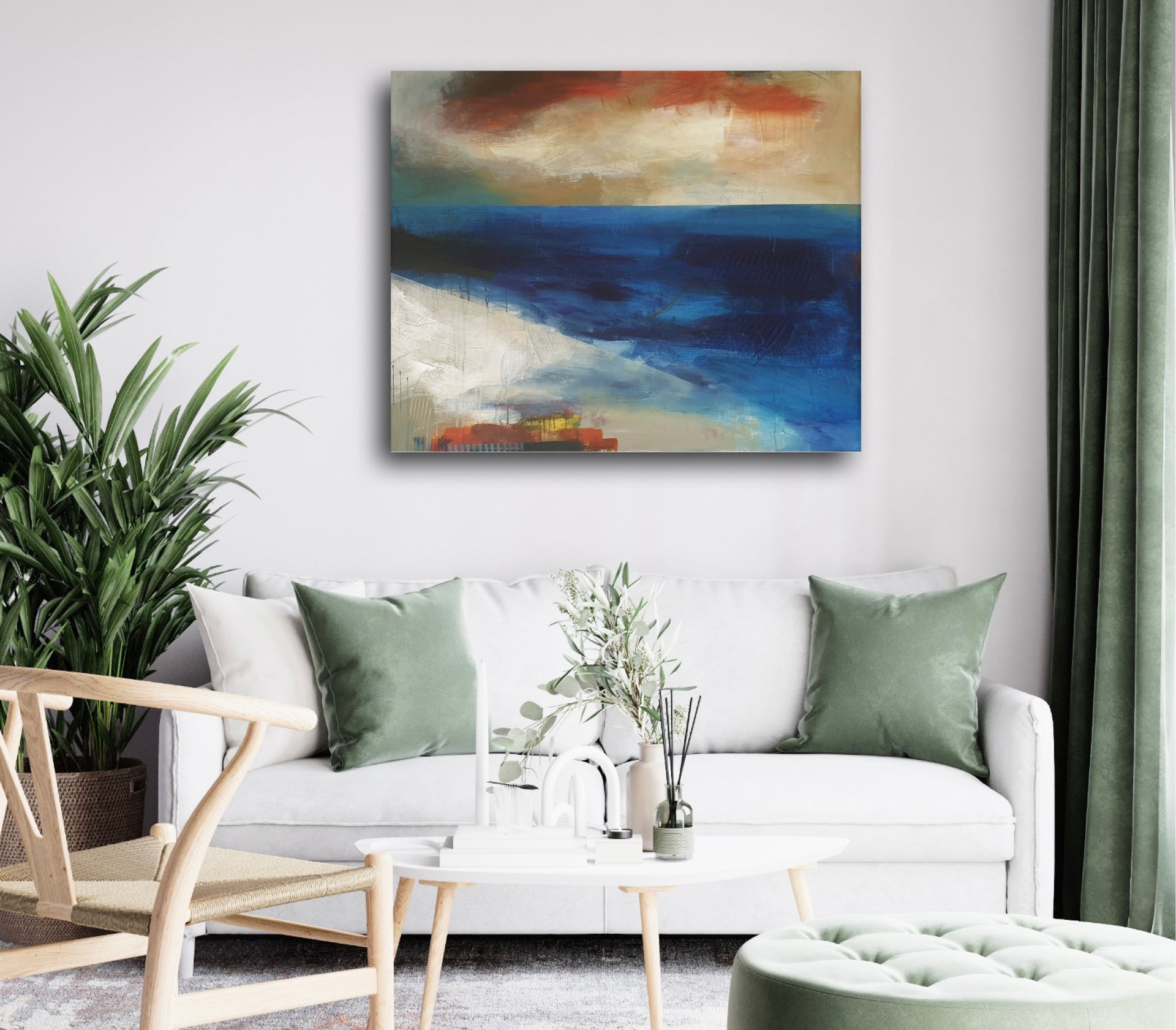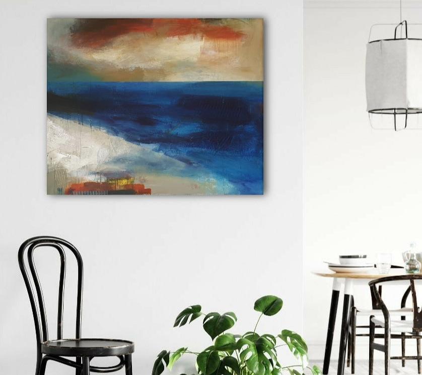 The painting is 100cm x 80cm x 4cm deep with off-white painted edges and is supplied ready to hang.