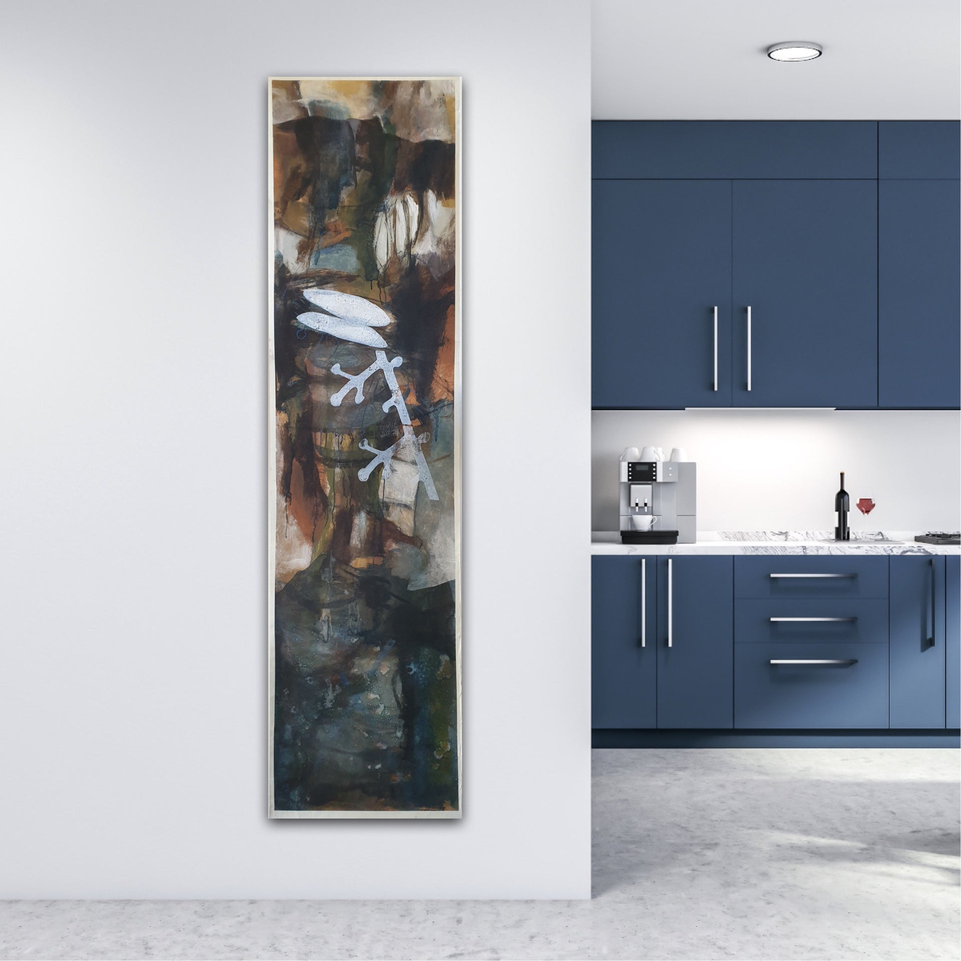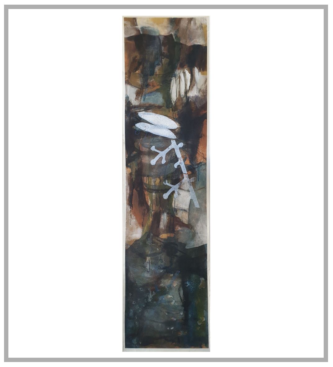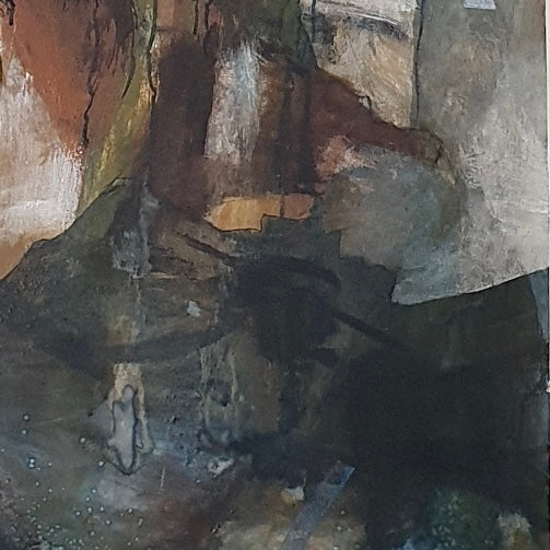 This is an original mixed media painting - charcoal, hand made natural earth pigment paint and ink, oil paint and cyanotype on paper.