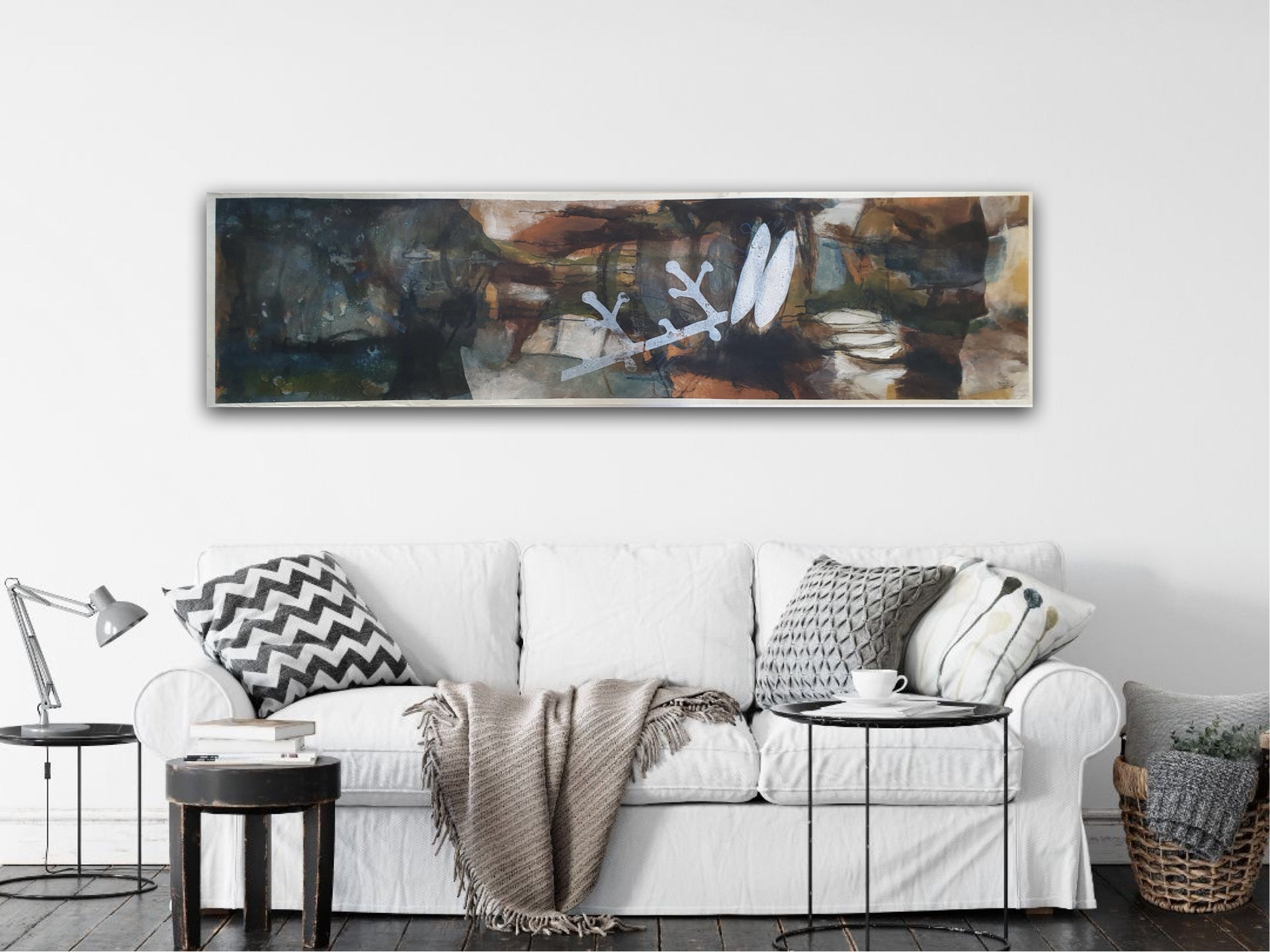 The painting is 56cm wide and 215cm long and will be supplied rolled in a tube.