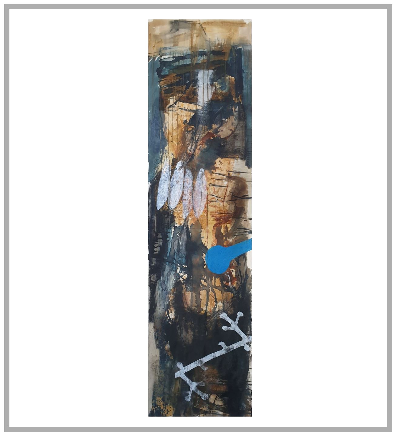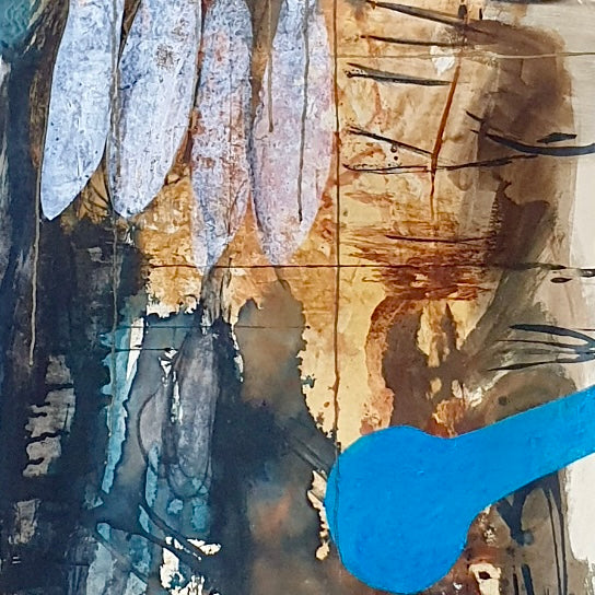 This is an original mixed media painting - charcoal, hand made natural earth pigment paint and ink, oil paint and cyanotype on paper.