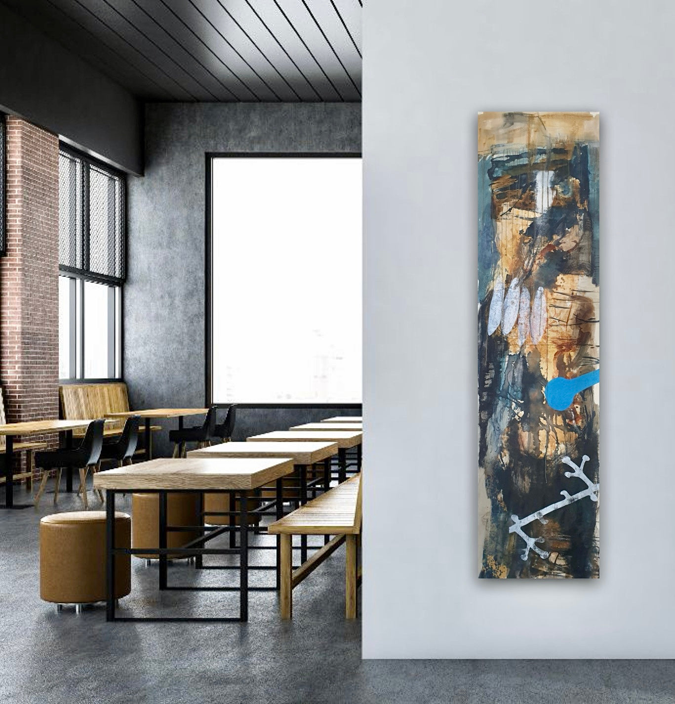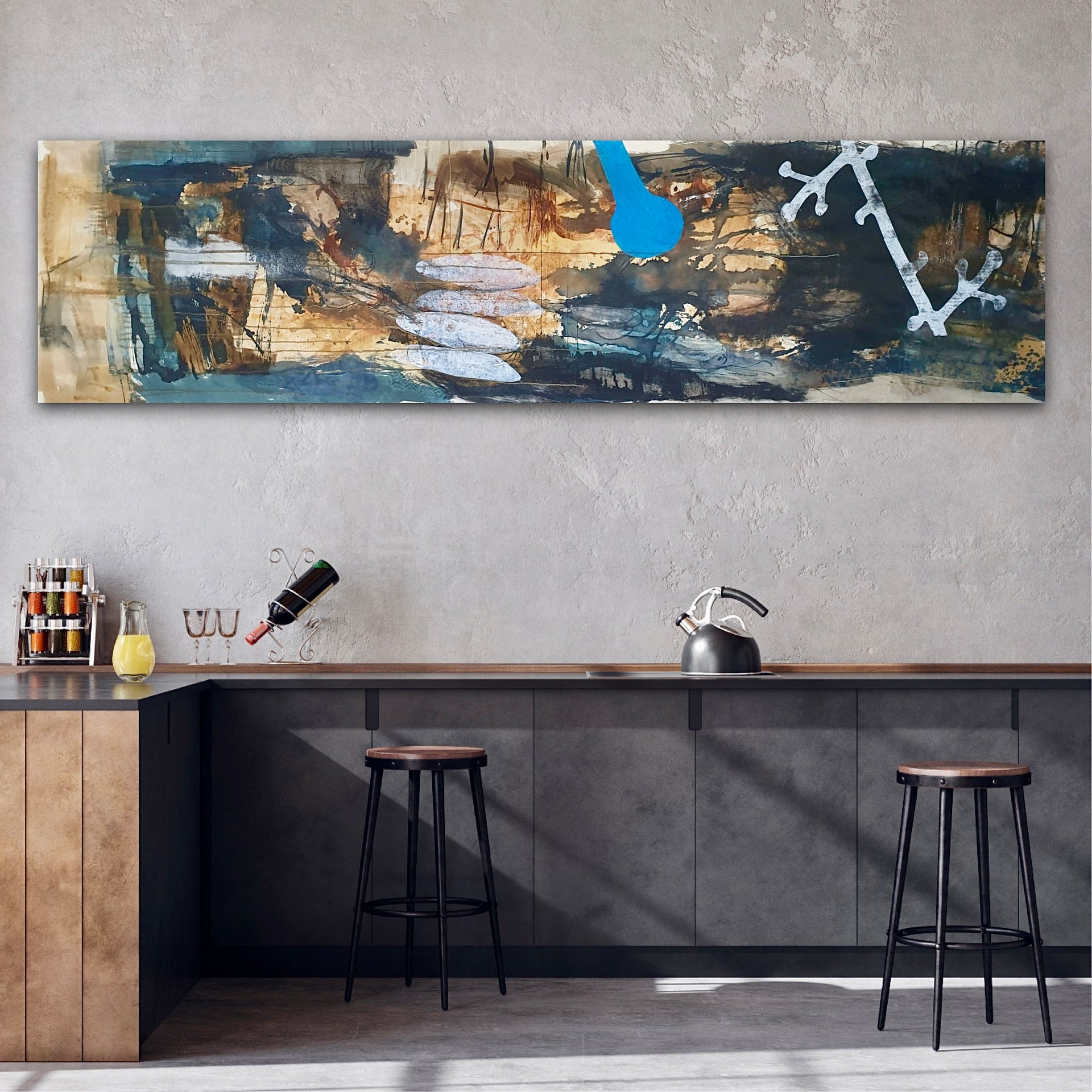 The painting is 56cm wide and 210cm long and will be supplied rolled in a tube.