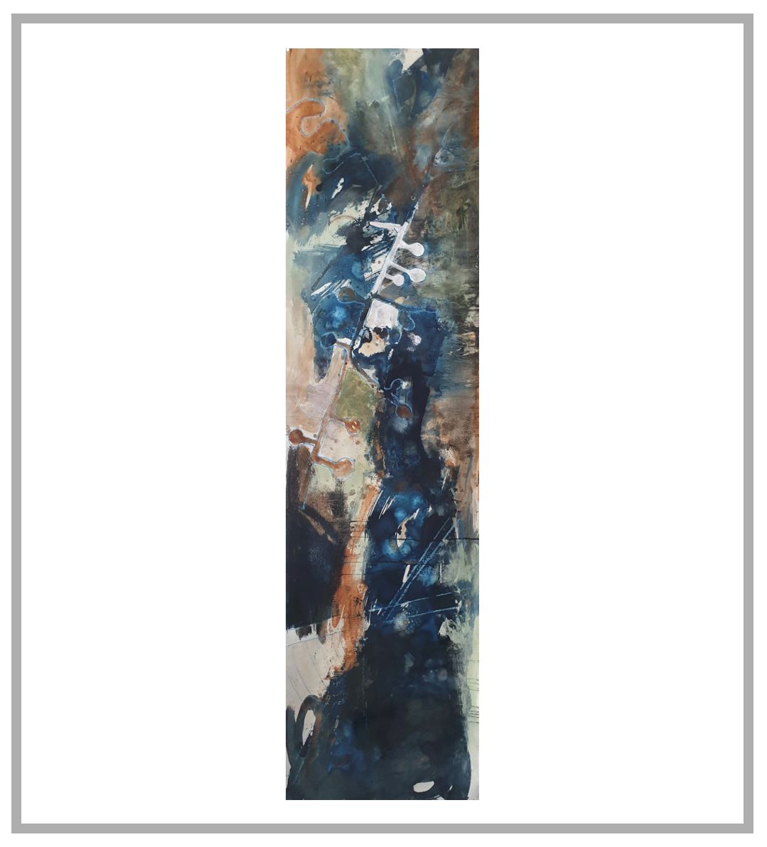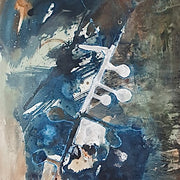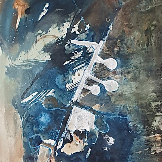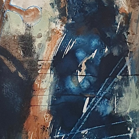 This is an original mixed media painting - charcoal, hand made natural earth pigment paint and ink, oil pastel and cyanotype on paper.