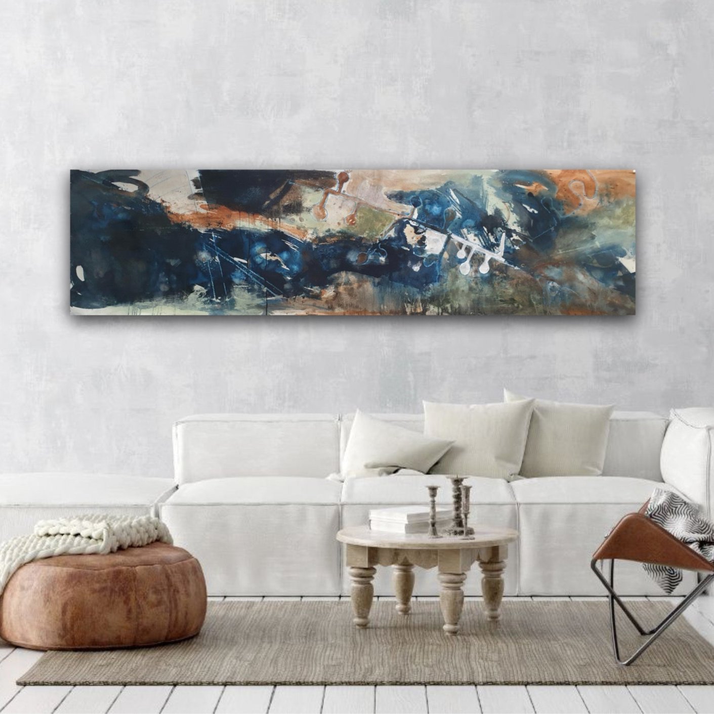 The painting is 56cm wide and 211cm long and will be supplied rolled in a tube.