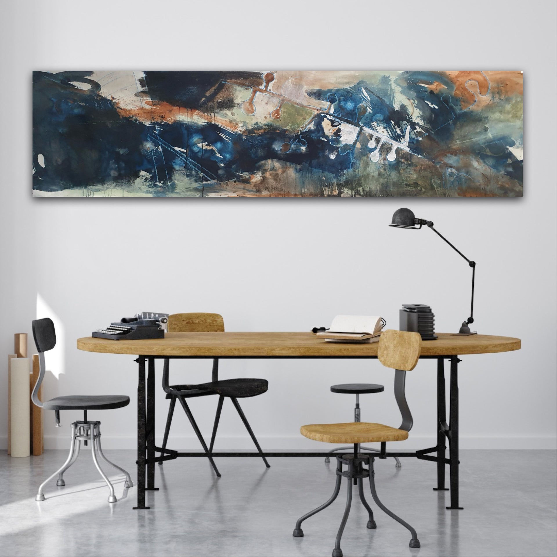 Shown in portrait and landscape orientations - this piece could be float-framed in clear perspex (as per example shown) to sit away from the wall for a modern industrial feel, or framed in a simple elegant style.