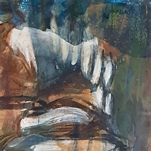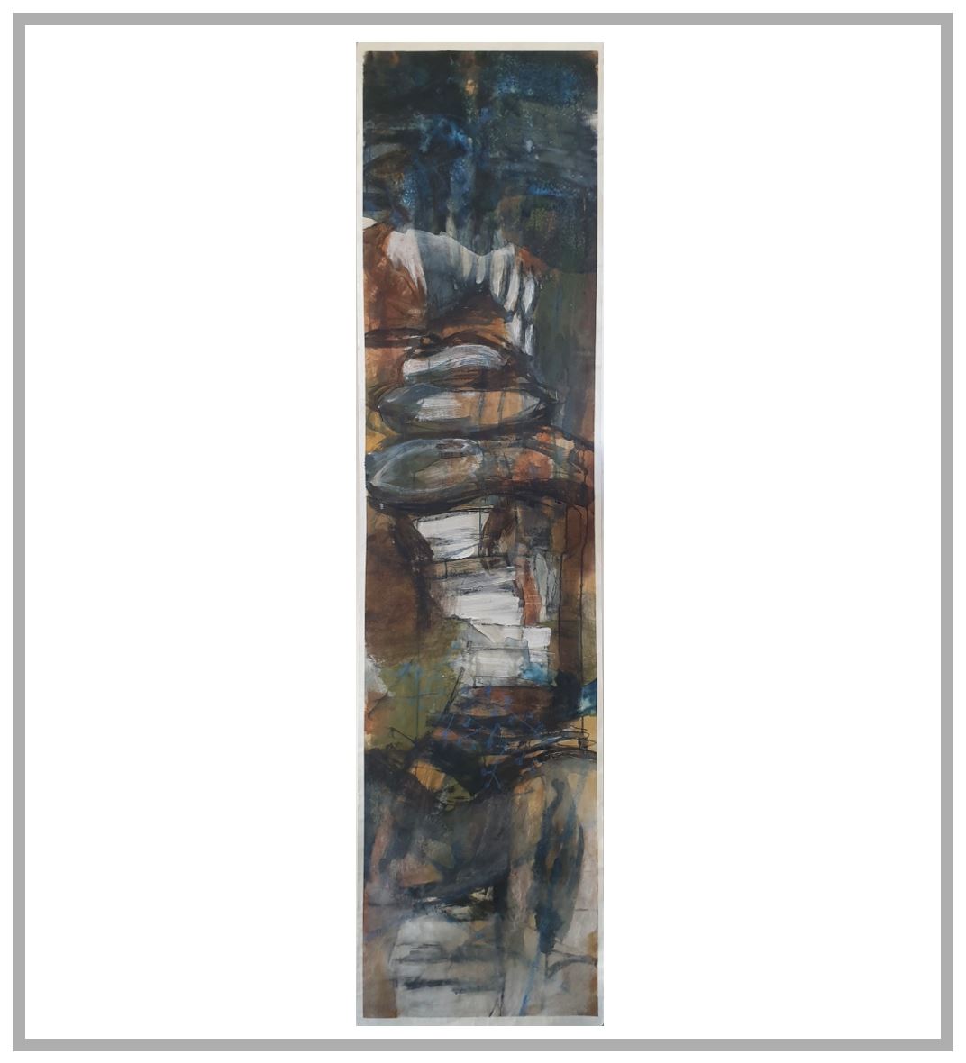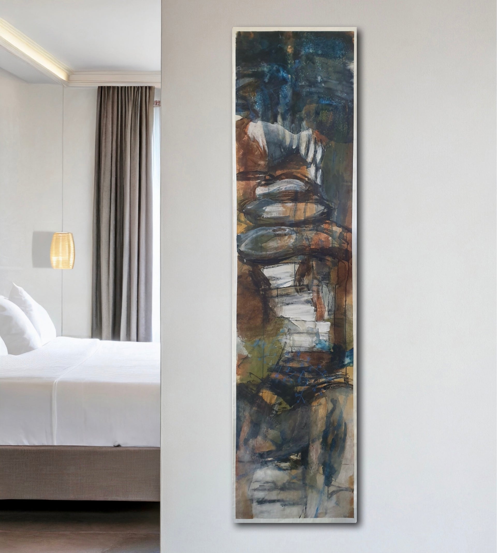 This is an original mixed media painting - charcoal, hand made natural earth pigment paint and ink and cyanotype on paper.