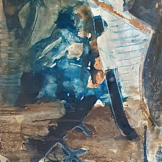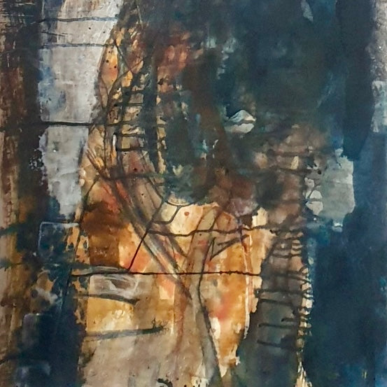 This is an original mixed media painting - charcoal, hand made natural earth pigment paint and ink, oil paint and cyanotype on paper.