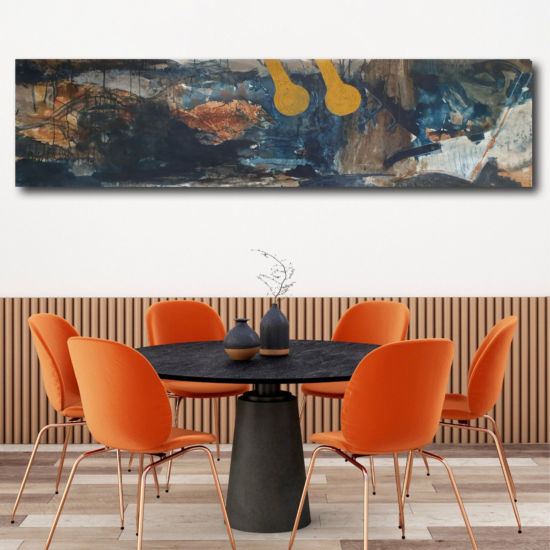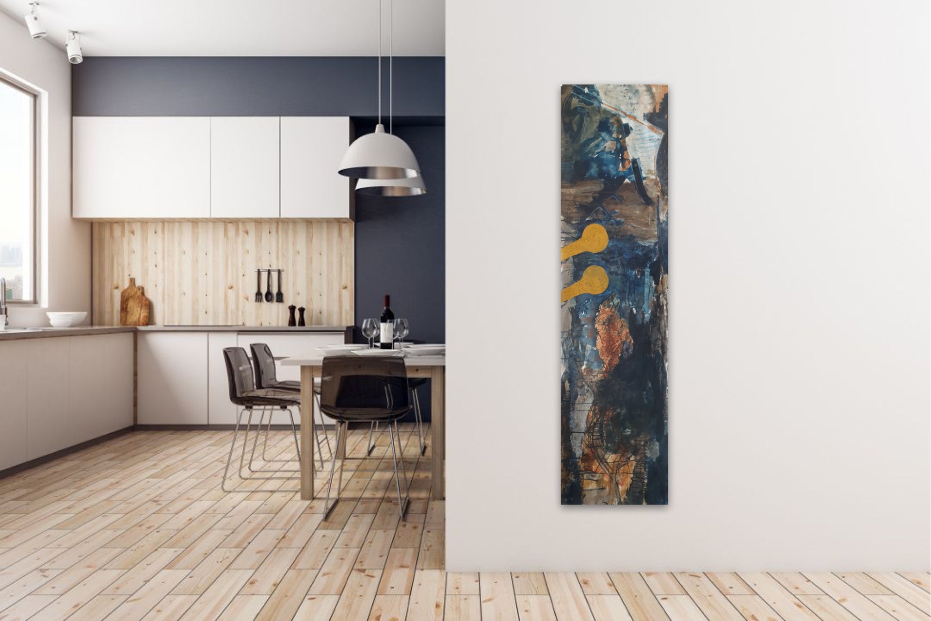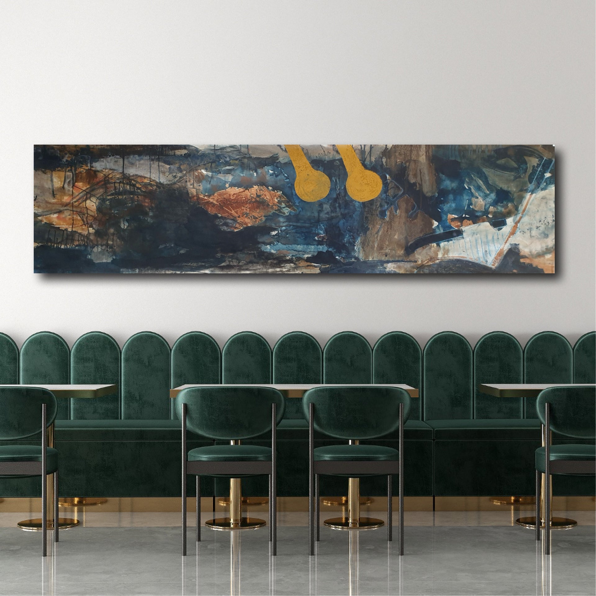 The painting is 56cm wide and 214cm long and will be supplied rolled in a tube.