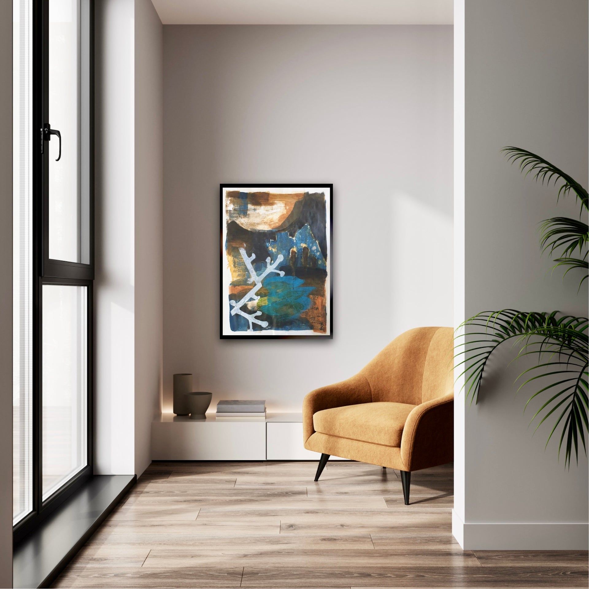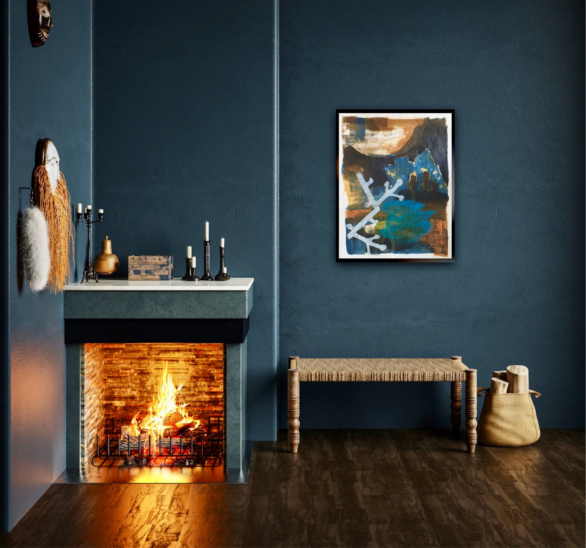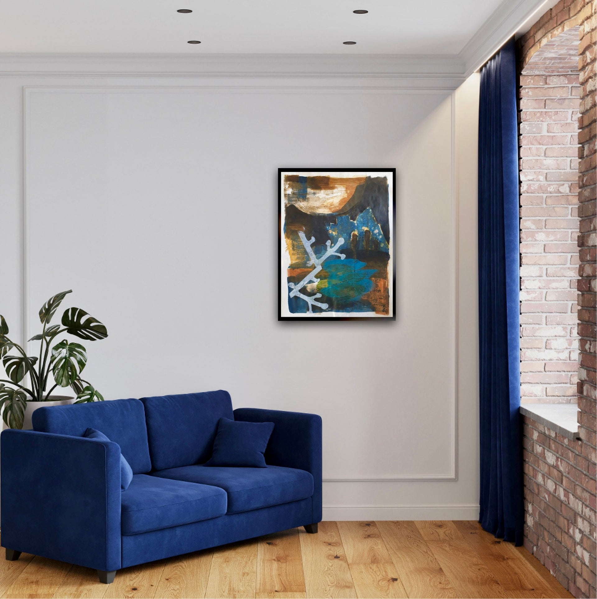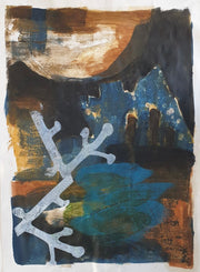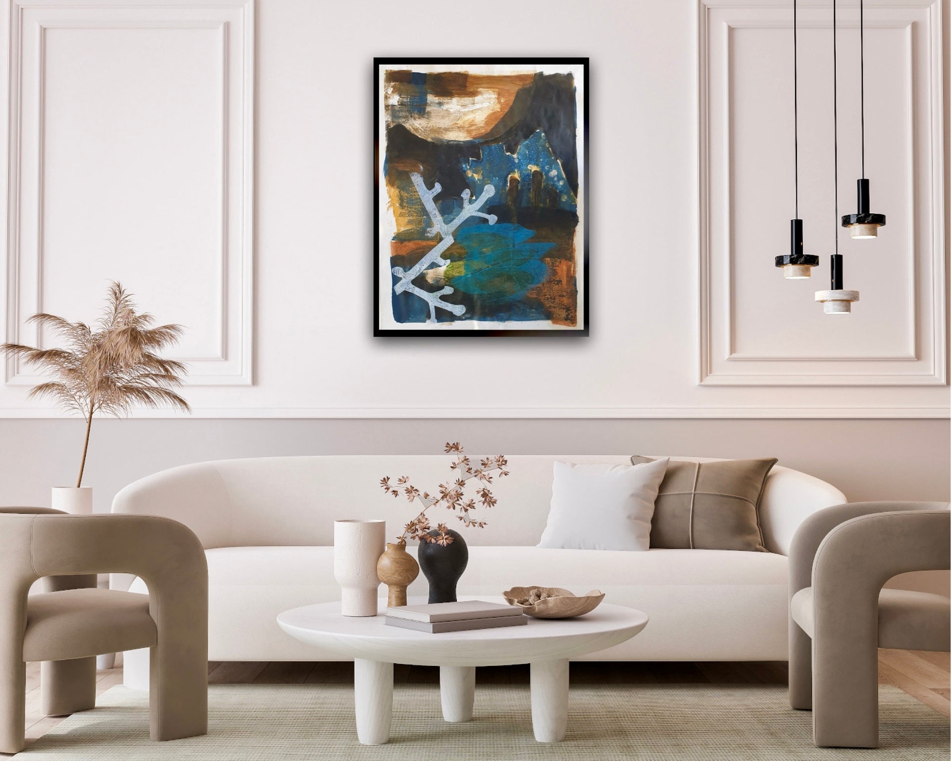 This is an original mixed media painting - hand made natural earth pigment paint and ink, printing ink and cyanotype on paper.