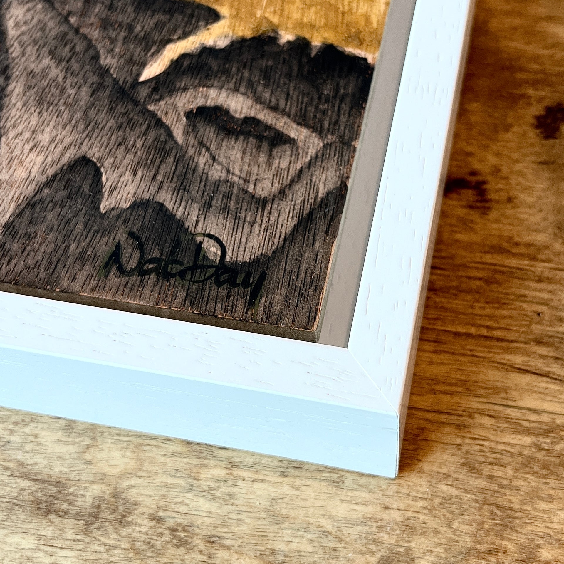The painting is 20cm by 20cm and is supplied in an off-white float frame with fixings for wall hanging.