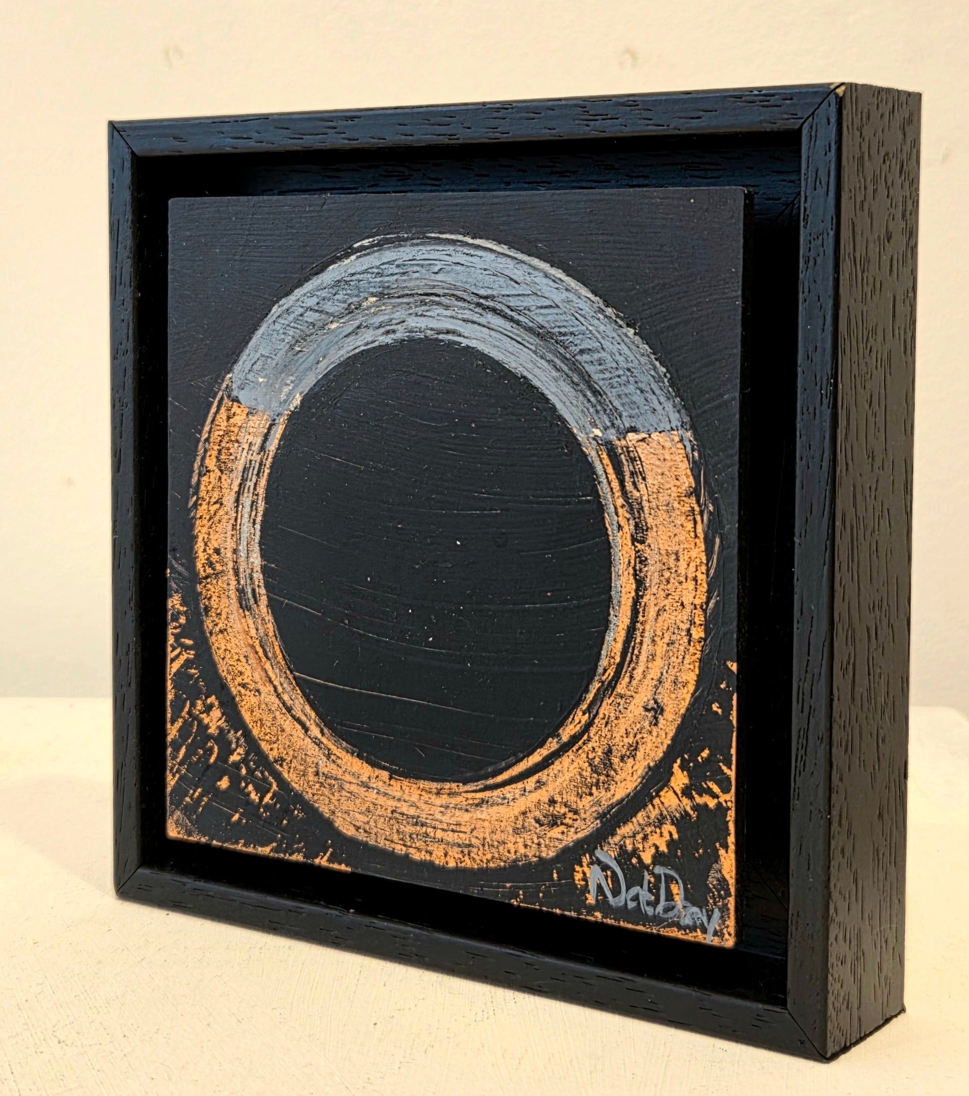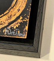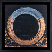 A luminous portal emerges from darkness, where copper leaf creates a bridge between earth and cosmos. This study explores the threshold between known and unknown, with its circular opening inviting contemplation of infinite possibilities. The contrast between the warm, textural copper and the deep void creates a sense of looking through ancient doorways or celestial phenomena. Despite its intimate scale, this piece carries the weight of cosmic mystery - a small window into vast universal truths.