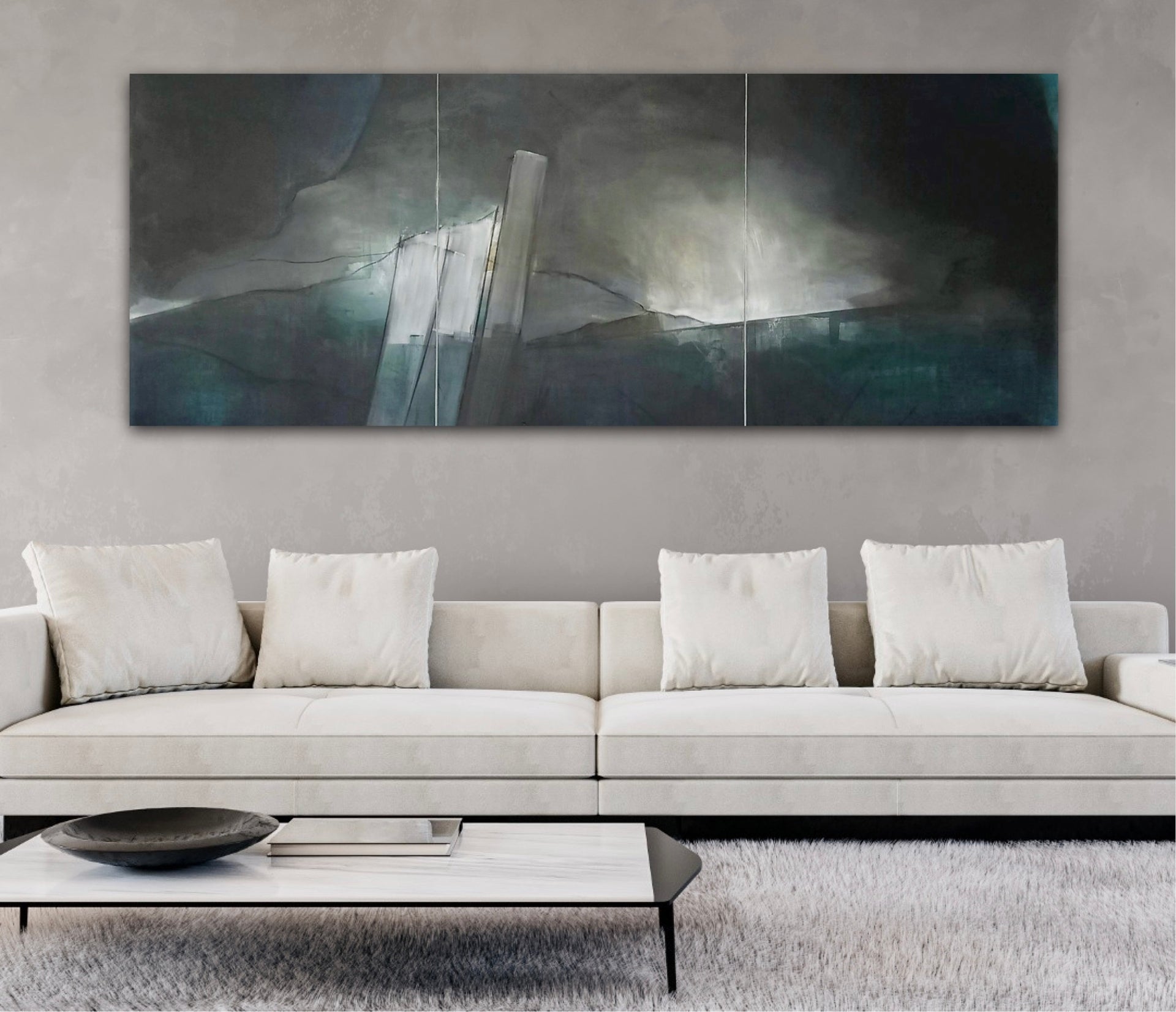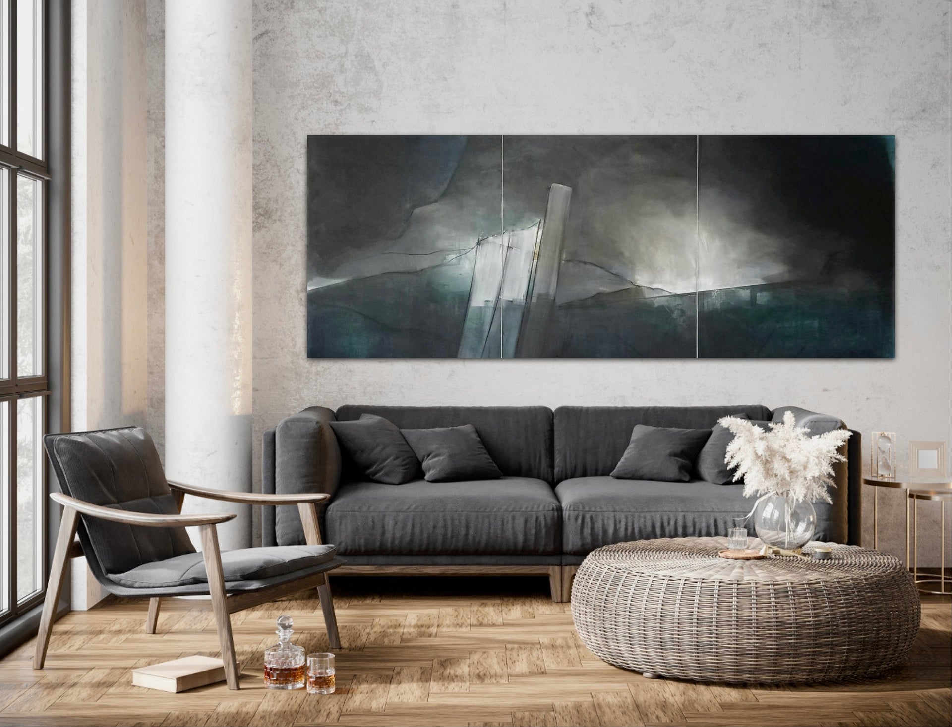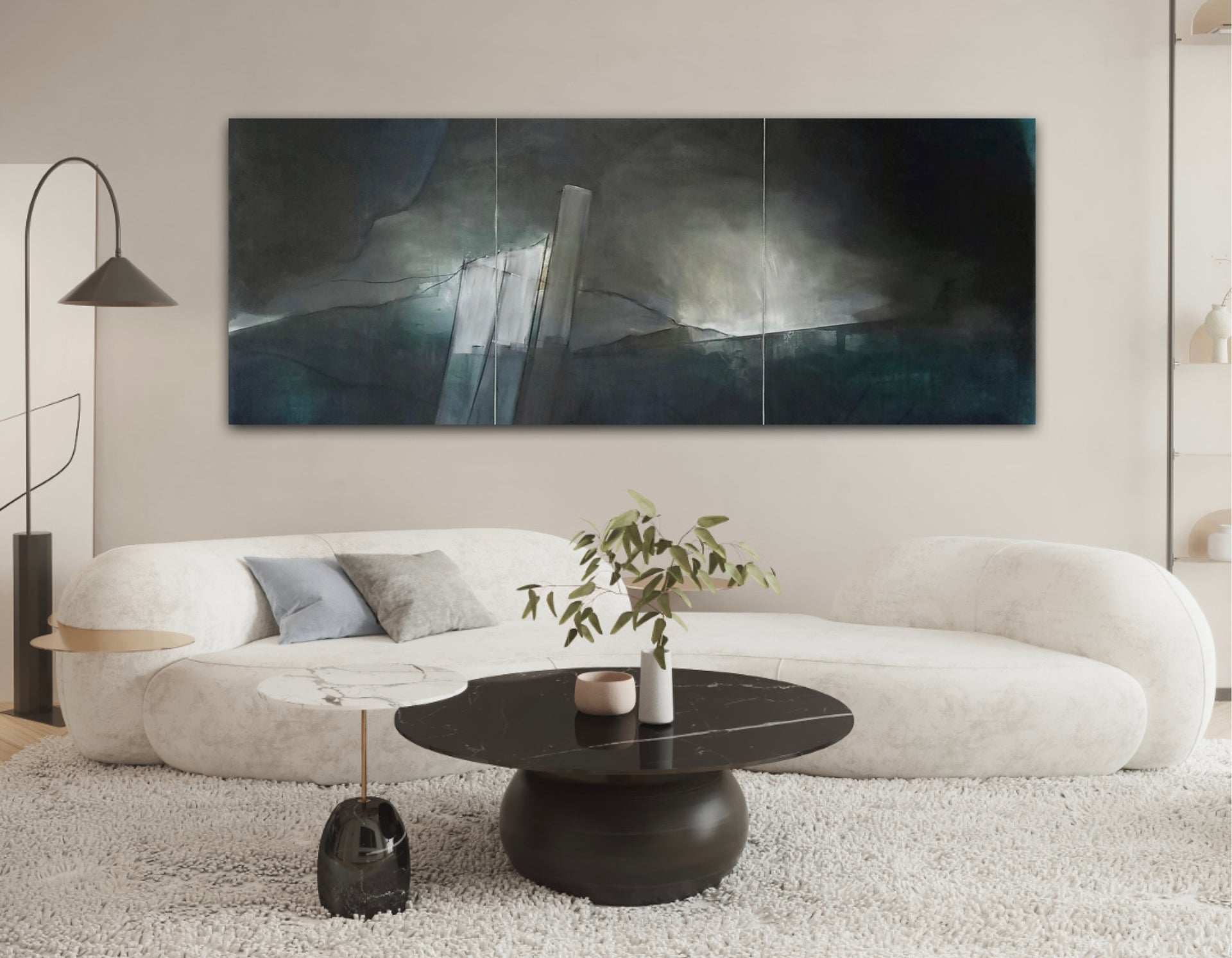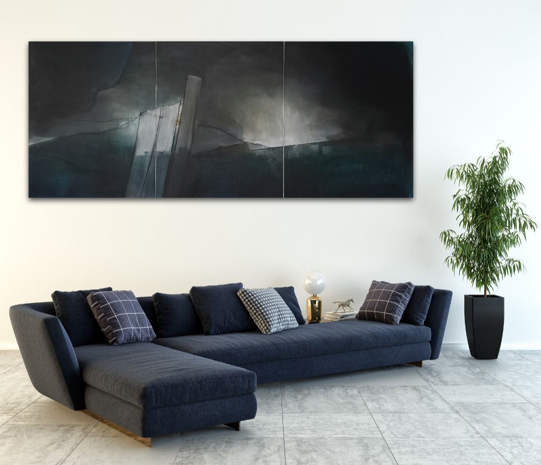 - Dimensions: 240cm wide x 100cm tall triptych (3 pieces)