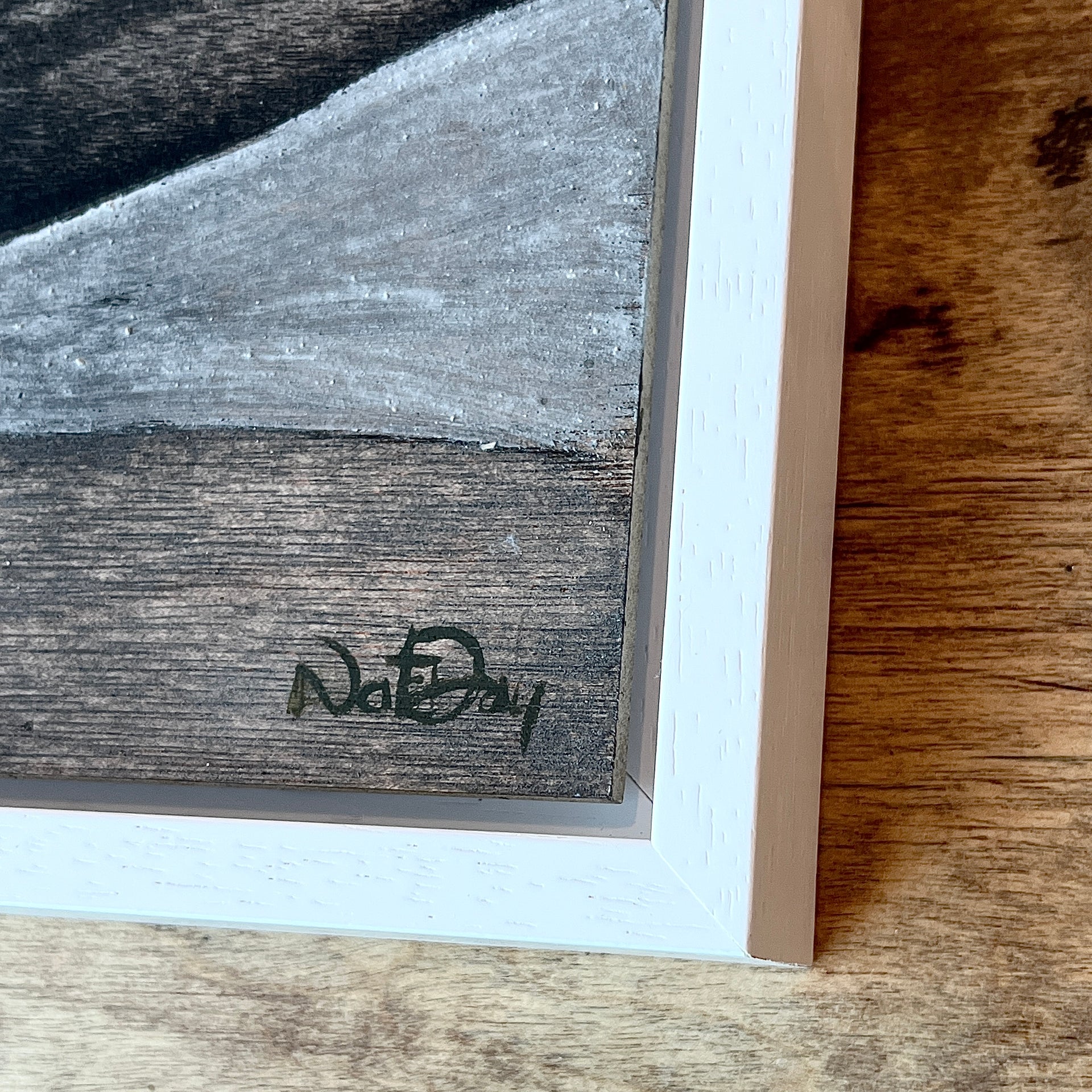 The painting is 20cm by 20cm and is supplied in an off-white float frame with fixings for wall hanging.