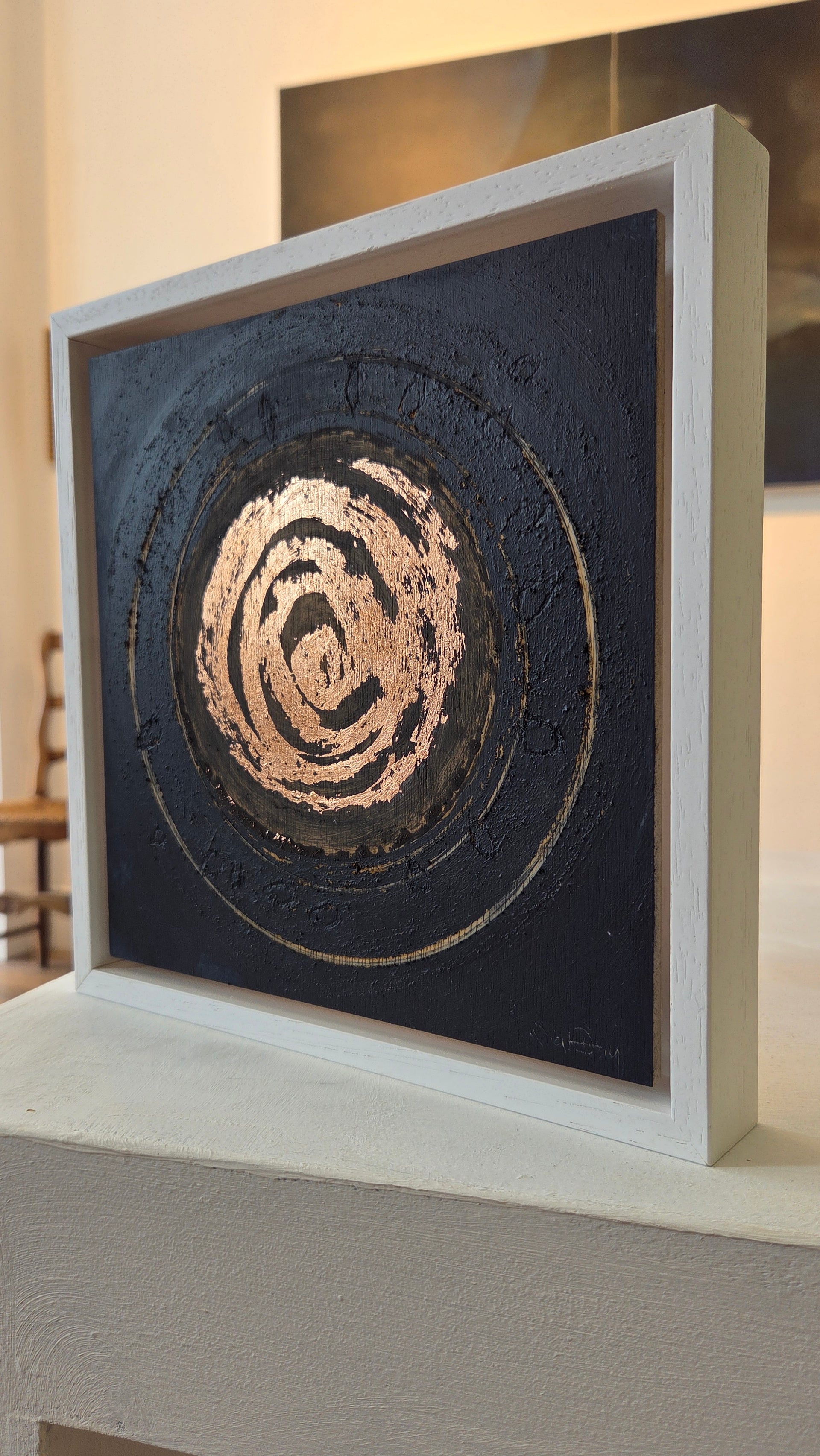 Where ancient architects aligned stones with celestial movements, this painting honors the sacred mathematics of Leskernick stone circle. Copper leaf catches light like the original bronze tools that shaped these settlements, while earth pigments tell stories of the people who called this windswept moor home. Time collapses in the presence of these stone circles - past and present existing in perfect harmony.