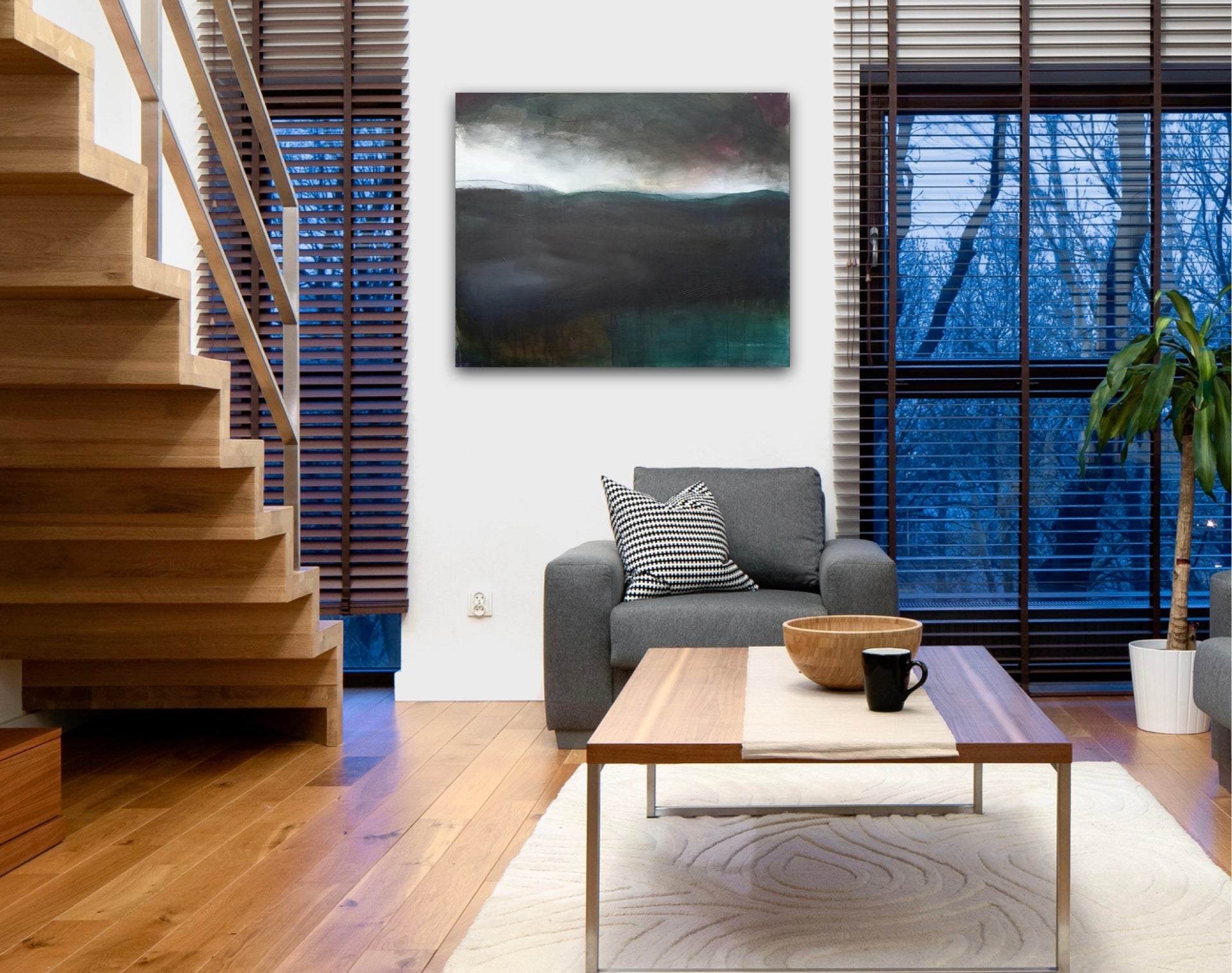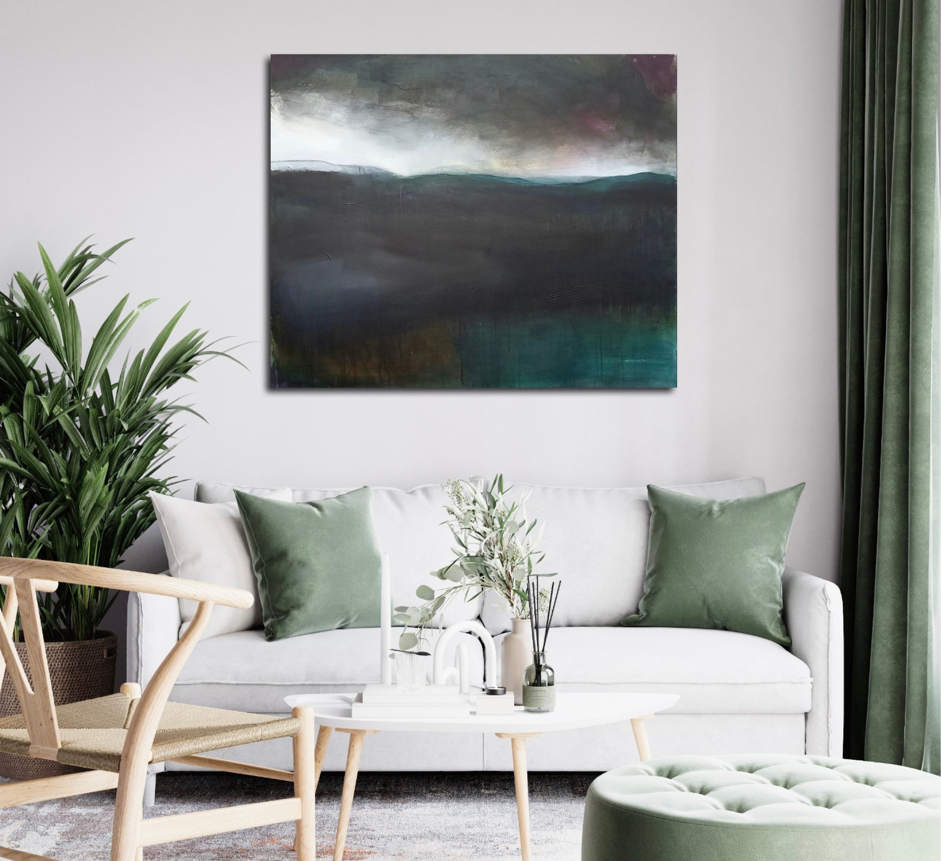 The overall size of the painting is 120cm x 100cm x 4cm deep with off-white painted edges and is supplied ready to hang.