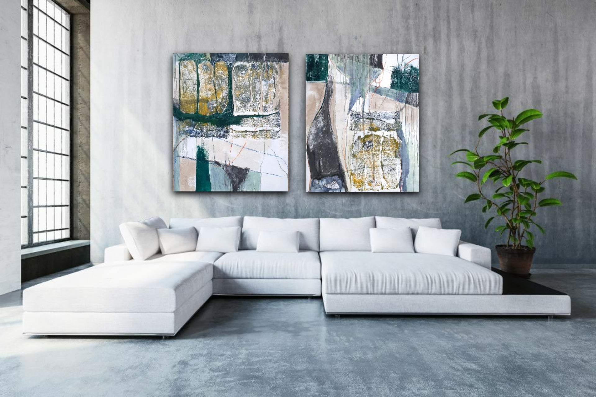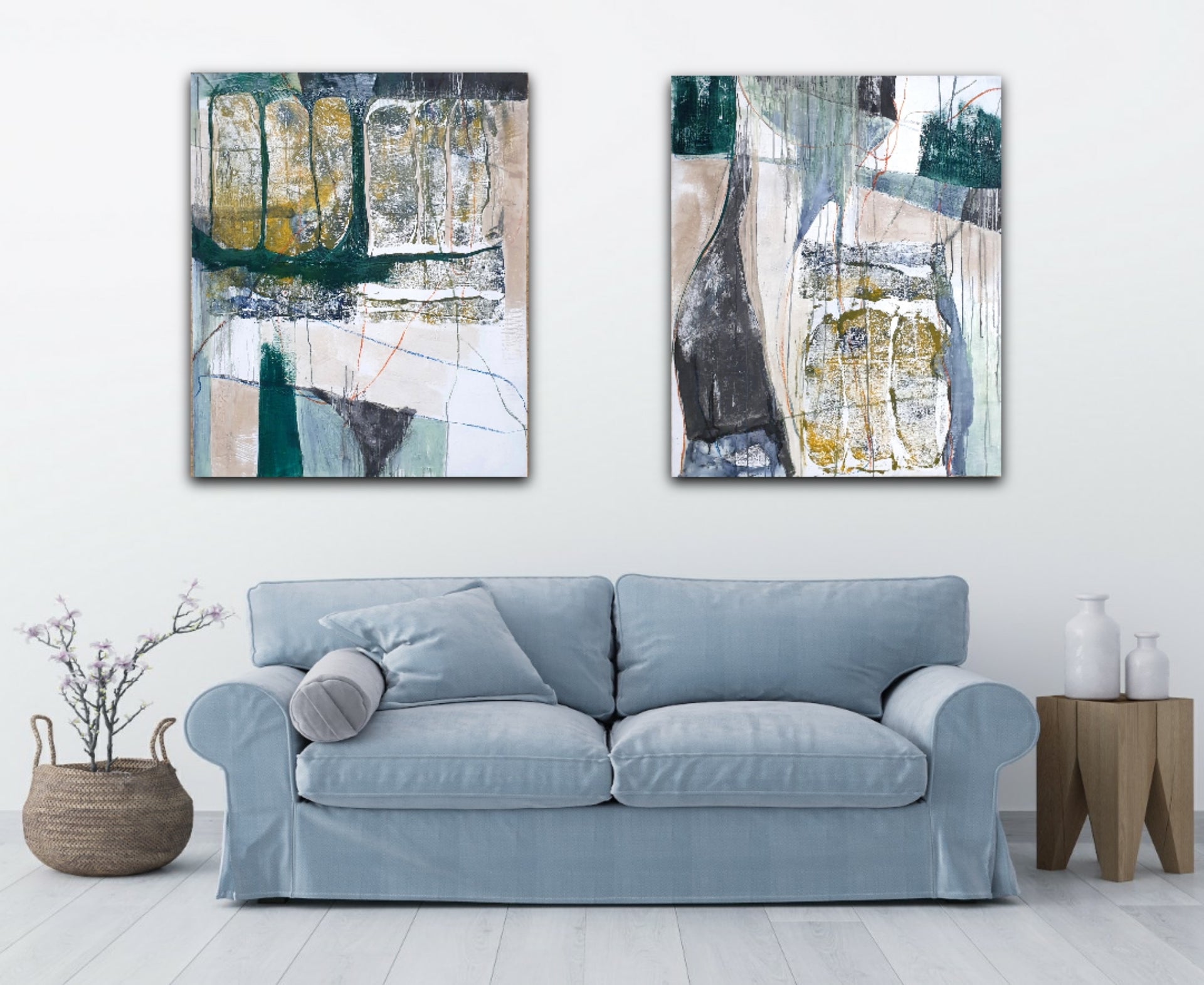 - Dimensions: 200cm wide x 120cm tall diptych (2 pieces)